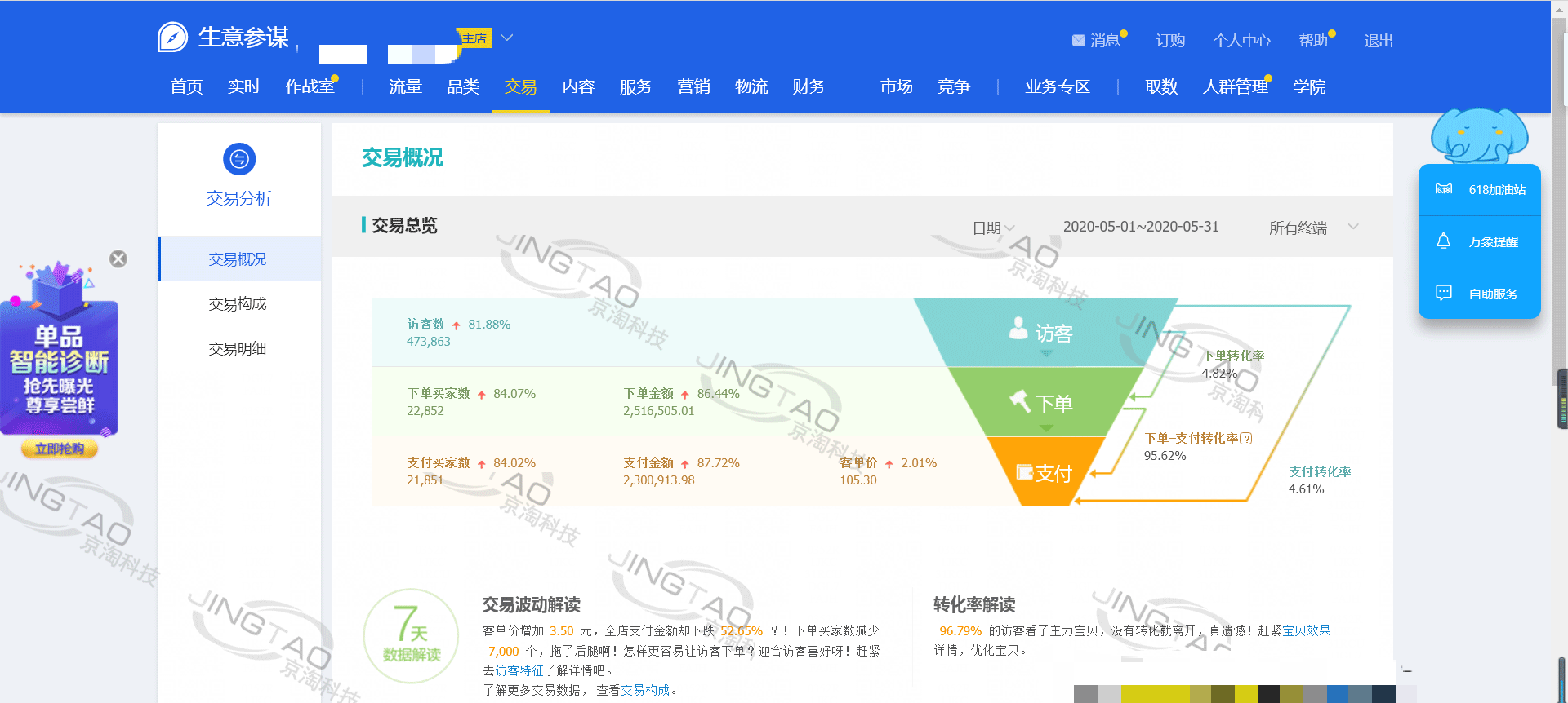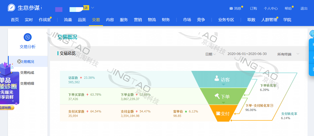 男裝客戶,19年10月合作,當(dāng)時(shí)自己做一個(gè)月的銷售額能做個(gè)幾十萬(wàn)塊錢,合作一年不到,現(xiàn)在每天的營(yíng)業(yè)額都在10萬(wàn),20年5月做了230萬(wàn),6月355萬(wàn),店鋪還在持續(xù)提升當(dāng)中,而且現(xiàn)在推廣費(fèi)用8%都不到。